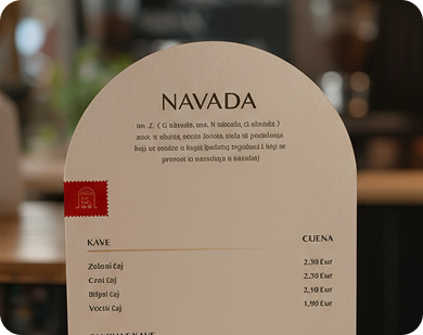 'NAVADA' - meaning: noun, feminine (Gen. sg. navade; pl. Nom. navade, Gen. navada) archaic: a custom; a way of life, work, or behavior that has become established within a human community and is transmitted from generation to generation. The term was accepted by the client as a brand name.
